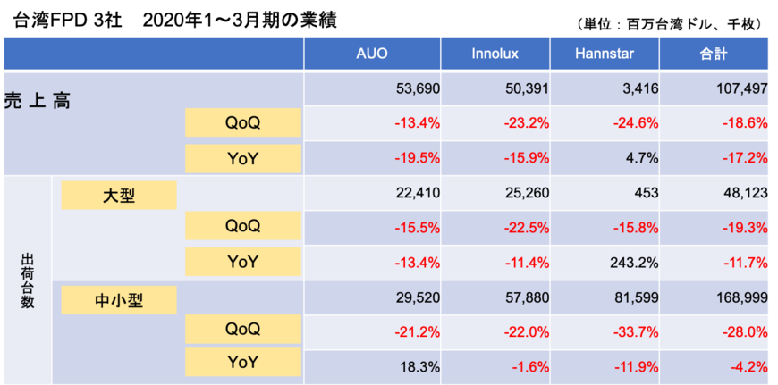 台湾FPDの1~3月期業績速報、売上高は前年同期比17%減に 2020.04.15 00:00 公開 執筆者津村 明宏 01/01 この写真の記事へ戻る この写真の記事へ戻る 電子デバイス産業新聞 編集長 津村 明宏 copy URL 執筆者 津村 明宏 株式会社産業タイムズ社 電子デバイス産業新聞 編集長 1995年3月に関西大学経済学部卒。1999年3月 ㈱産業タイムズ社に入社。電子デバイス業界の専門紙である電子デバイス産業新聞(旧・半導体産業新聞)の記者として、2007年より副編集長、2009年12月より編集長。 あわせて読みたい
