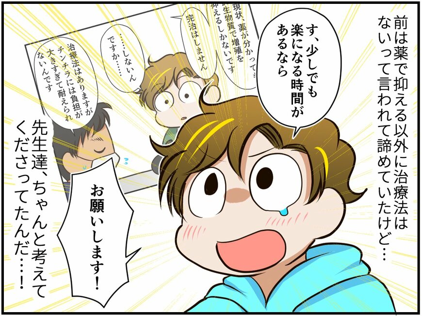頑張る?もうやめる?闘病生活は『決断』の連続。そして…【チンチライフ61話】 【マンガ記事】チンチライフ! 2020.08.11 00:05 公開 執筆者祭 02/13 03/13 04/13 05/13 06/13 07/13 08/13 次の写真ページへ この写真の記事へ戻る copy URL あわせて読みたい
