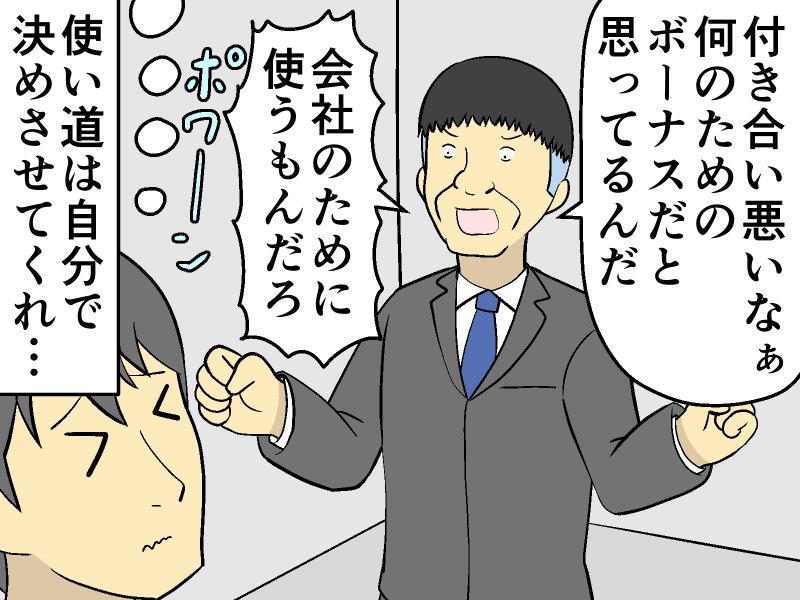 「ボーナスは会社のために」と飲み会を強要する上司。部下の返事は?【マンガ記事】妄想シャイン 2020.12.25 00:05 公開 執筆者寺須こってぃ 02/08 03/08 04/08 05/08 06/08 07/08 08/08 この写真の記事へ戻る 寺須こってぃ copy URL 執筆者 寺須こってぃ Web漫画家 Web漫画作家、WEB漫画とWEB小説の新都社にて2008年スコッティ名義でデビュー、現在ライブオブジョブ連載中。著作に「リリースニートキャンプ」「クウォーターウォーターライン」などがある。【マンガ記事】妄想シャインまとめ あわせて読みたい