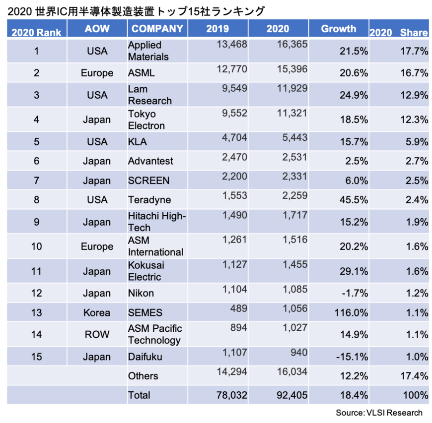 上位15社に日本企業7社、20年の半導体装置メーカー売上ランキング 全体トップは米アプライド、日系1位は東京エレクトロン 2021.03.24 11:00 公開 執筆者津村 明宏 産業タイムズ社 01/01 この写真の記事へ戻る この写真の記事へ戻る 電子デバイス産業新聞 編集長 津村 明宏 copy URL 執筆者 津村 明宏 株式会社産業タイムズ社 電子デバイス産業新聞 編集長 1995年3月に関西大学経済学部卒。1999年3月 ㈱産業タイムズ社に入社。電子デバイス業界の専門紙である電子デバイス産業新聞(旧・半導体産業新聞)の記者として、2007年より副編集長、2009年12月より編集長。 産業タイムズ社 あわせて読みたい