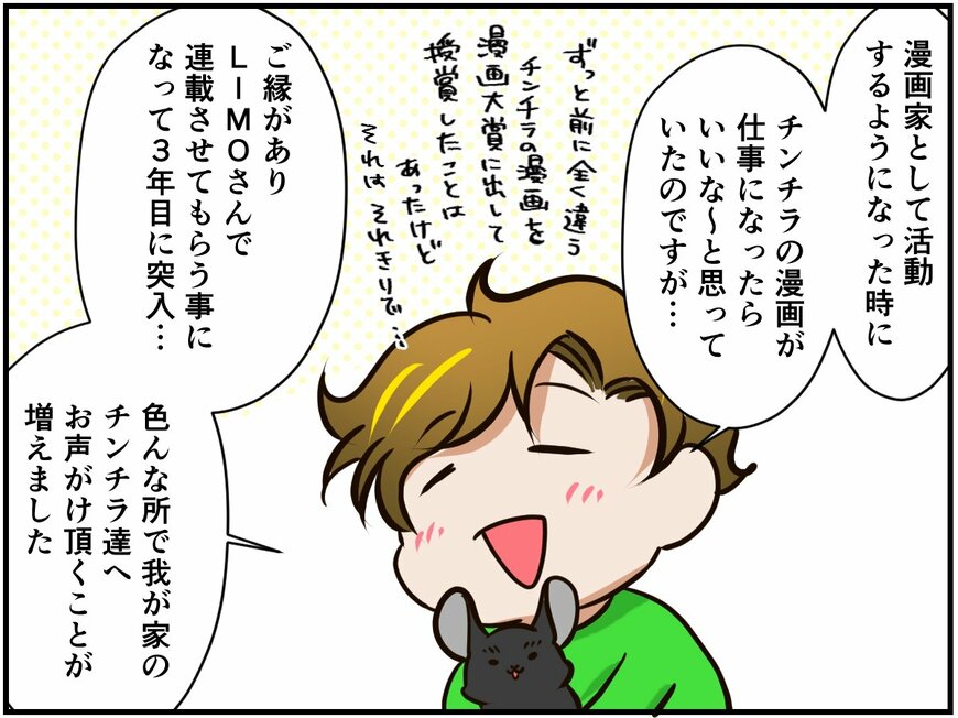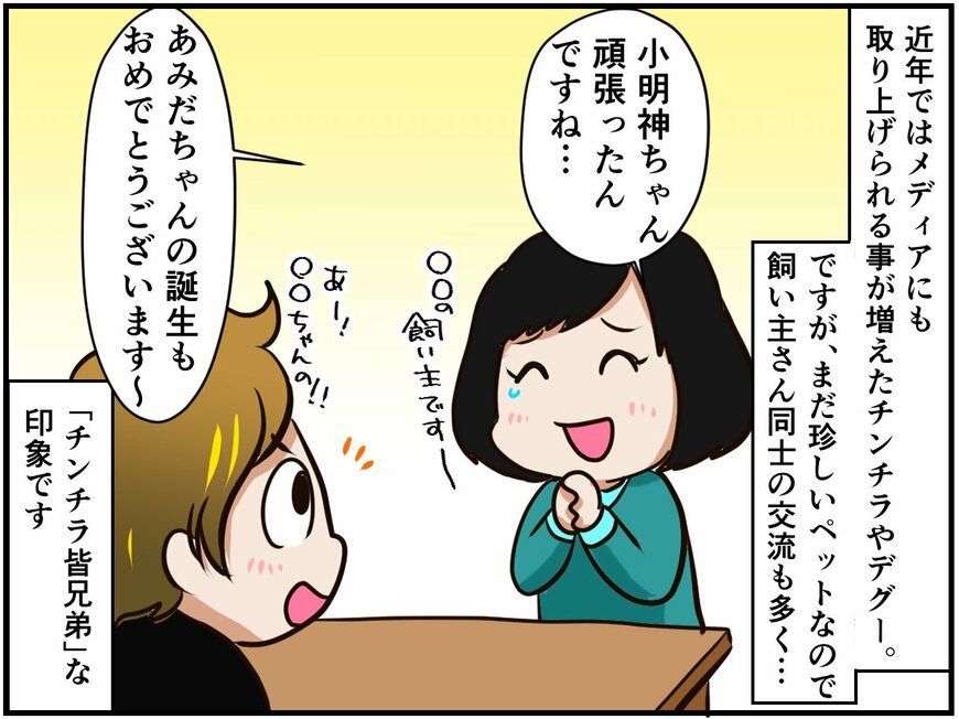 チンチラが繋いでくれた多くの出会い。本編では見れなかった裏話をご紹介【チンチライフ98話】 【マンガ記事】チンチライフ!2周年&100回目おめでとう企画(第1弾) 2021.05.19 07:30 公開 執筆者祭 02/10 03/10 04/10 05/10 06/10 07/10 08/10 次の写真ページへ この写真の記事へ戻る copy URL あわせて読みたい