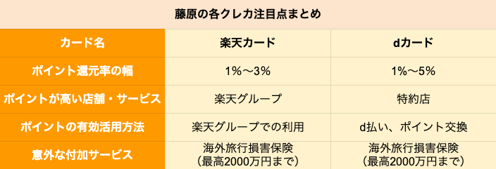 【クレカ比較】「楽天カード」と「dカード」はどちらがポイントを貯めやすいクレカか 2021.06.16 05:30 公開 執筆者藤原 悠喜 02/03 03/03 この写真の記事へ戻る 藤原 悠喜 copy URL 執筆者 藤原 悠喜 株式会社モニクルリサーチ 編集者/クレジットカード・住宅ローン・FX担当 専門学校を卒業後、複数のIT企業にて、Webメディアの立ち上げや運営に従事。SEOディレクターや広告運用など、Webマーケティング歴10年。現在は、クレジットカードのジャンルを中心にコンテンツの企画立案や執筆を行っている。これまで携わったクレジットカードのコンテンツは500以上。自身が使用するメインやサブのクレジットカードを定期的に入れ替え、サービス内容や使い勝手をユーザー視点で検証している。(2023年11月20日更新) あわせて読みたい