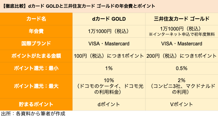 【ゴールドカード】「dカード GOLD」と「三井住友カード ゴールド」を徹底比較、どちらがポイントの貯まりやすいクレジットカードか 2021.06.23 05:30 公開 執筆者藤原 悠喜 01/03 この写真の記事へ戻る 次の写真一覧へ copy URL 執筆者 藤原 悠喜 株式会社モニクルリサーチ 編集者/クレジットカード・住宅ローン・FX担当 専門学校を卒業後、複数のIT企業にて、Webメディアの立ち上げや運営に従事。SEOディレクターや広告運用など、Webマーケティング歴10年。現在は、クレジットカードのジャンルを中心にコンテンツの企画立案や執筆を行っている。これまで携わったクレジットカードのコンテンツは500以上。自身が使用するメインやサブのクレジットカードを定期的に入れ替え、サービス内容や使い勝手をユーザー視点で検証している。(2023年11月20日更新) あわせて読みたい