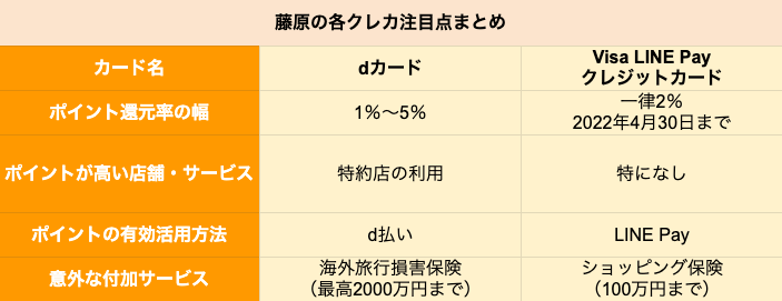 【クレカ比較】ドコモ「dカード」とLINE「Visa LINE Pay クレジットカード」はどちらがポイントを貯めやすいクレカか 2021.06.26 05:30 公開 執筆者藤原 悠喜 02/03 03/03 この写真の記事へ戻る 藤原 悠喜 copy URL 執筆者 藤原 悠喜 株式会社モニクルリサーチ 編集者/クレジットカード・住宅ローン・FX担当 専門学校を卒業後、複数のIT企業にて、Webメディアの立ち上げや運営に従事。SEOディレクターや広告運用など、Webマーケティング歴10年。現在は、クレジットカードのジャンルを中心にコンテンツの企画立案や執筆を行っている。これまで携わったクレジットカードのコンテンツは500以上。自身が使用するメインやサブのクレジットカードを定期的に入れ替え、サービス内容や使い勝手をユーザー視点で検証している。(2023年11月20日更新) あわせて読みたい