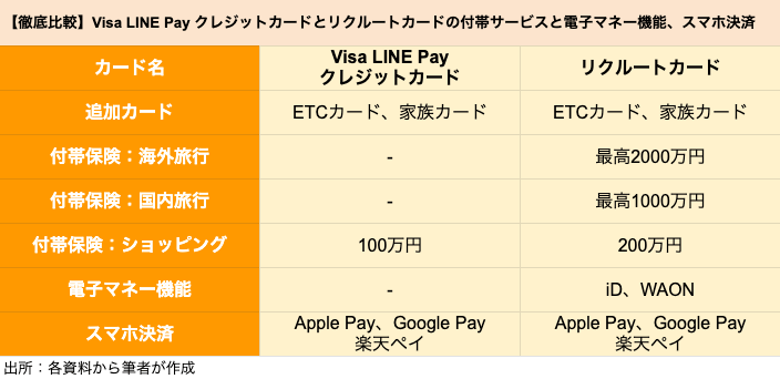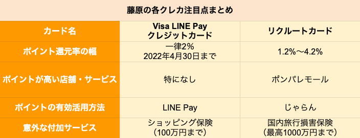 【クレカ比較】「Visa LINE Pay クレジットカード」と「リクルートカード」はどちらがポイントを貯めやすいクレカか 2021.07.12 05:30 公開 執筆者藤原 悠喜 02/03 03/03 この写真の記事へ戻る 藤原 悠喜 copy URL 執筆者 藤原 悠喜 株式会社モニクルリサーチ 編集者/クレジットカード・住宅ローン・FX担当 専門学校を卒業後、複数のIT企業にて、Webメディアの立ち上げや運営に従事。SEOディレクターや広告運用など、Webマーケティング歴10年。現在は、クレジットカードのジャンルを中心にコンテンツの企画立案や執筆を行っている。これまで携わったクレジットカードのコンテンツは500以上。自身が使用するメインやサブのクレジットカードを定期的に入れ替え、サービス内容や使い勝手をユーザー視点で検証している。(2023年11月20日更新) あわせて読みたい
