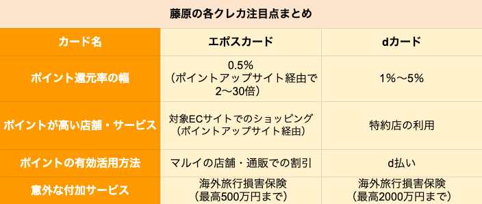 【クレカ比較】エポスカードとdカードはどちらがポイントを貯めやすいクレジットカードか 2021.07.18 05:30 公開 執筆者藤原 悠喜 02/03 03/03 この写真の記事へ戻る 藤原 悠喜 copy URL 執筆者 藤原 悠喜 株式会社モニクルリサーチ 編集者/クレジットカード・住宅ローン・FX担当 専門学校を卒業後、複数のIT企業にて、Webメディアの立ち上げや運営に従事。SEOディレクターや広告運用など、Webマーケティング歴10年。現在は、クレジットカードのジャンルを中心にコンテンツの企画立案や執筆を行っている。これまで携わったクレジットカードのコンテンツは500以上。自身が使用するメインやサブのクレジットカードを定期的に入れ替え、サービス内容や使い勝手をユーザー視点で検証している。(2023年11月20日更新) あわせて読みたい