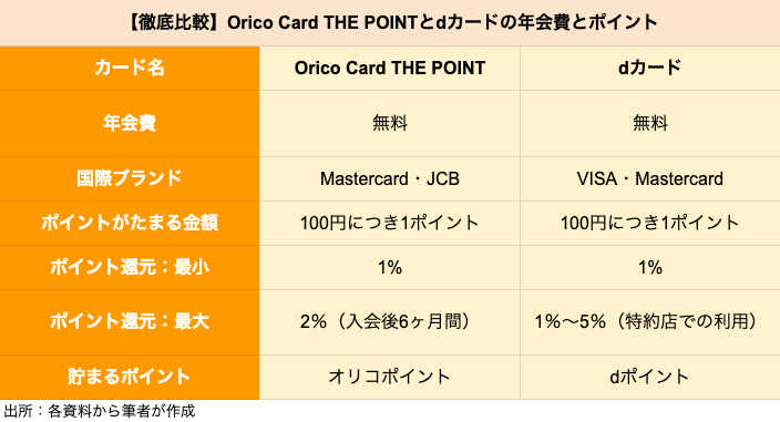 【クレカ比較】「Orico Card THE POINT」と「dカード」はどちらがポイントを貯めやすいクレカか 2021.07.29 05:30 公開 執筆者藤原 悠喜 01/03 この写真の記事へ戻る 次の写真一覧へ copy URL 執筆者 藤原 悠喜 株式会社モニクルリサーチ 編集者/クレジットカード・住宅ローン・FX担当 専門学校を卒業後、複数のIT企業にて、Webメディアの立ち上げや運営に従事。SEOディレクターや広告運用など、Webマーケティング歴10年。現在は、クレジットカードのジャンルを中心にコンテンツの企画立案や執筆を行っている。これまで携わったクレジットカードのコンテンツは500以上。自身が使用するメインやサブのクレジットカードを定期的に入れ替え、サービス内容や使い勝手をユーザー視点で検証している。(2023年11月20日更新) あわせて読みたい