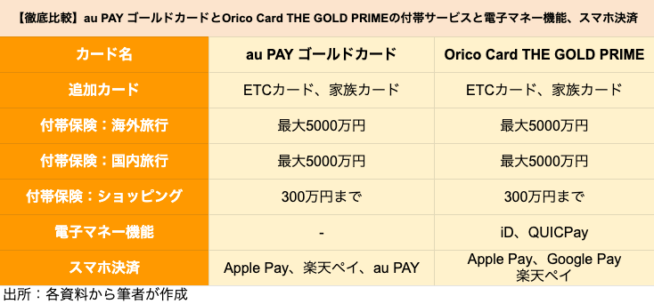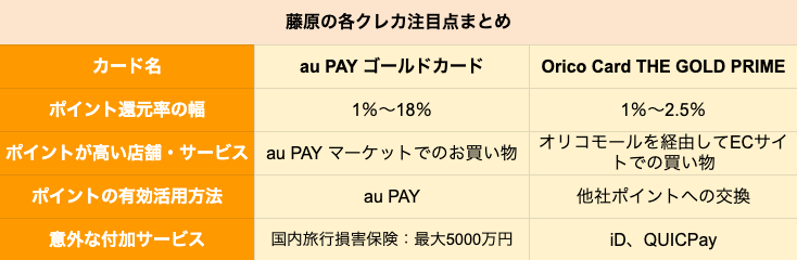 【ゴールドカード】au「au PAY ゴールドカード」とオリコ「Orico Card THE GOLD PRIME」を徹底比較、どちらがポイントを貯めやすいクレジットカードか 2021.08.06 05:30 公開 執筆者藤原 悠喜 02/03 03/03 この写真の記事へ戻る 藤原 悠喜 copy URL 執筆者 藤原 悠喜 株式会社モニクルリサーチ 編集者/クレジットカード・住宅ローン・FX担当 専門学校を卒業後、複数のIT企業にて、Webメディアの立ち上げや運営に従事。SEOディレクターや広告運用など、Webマーケティング歴10年。現在は、クレジットカードのジャンルを中心にコンテンツの企画立案や執筆を行っている。これまで携わったクレジットカードのコンテンツは500以上。自身が使用するメインやサブのクレジットカードを定期的に入れ替え、サービス内容や使い勝手をユーザー視点で検証している。(2023年11月20日更新) あわせて読みたい