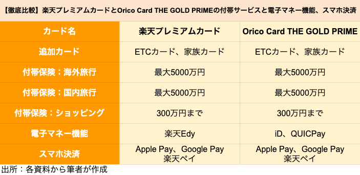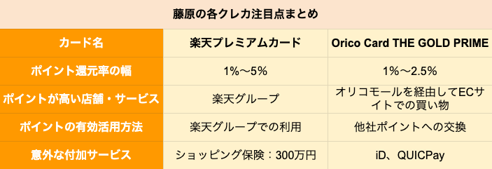 【ゴールドカード】楽天「楽天プレミアムカード」とオリコ「Orico Card THE GOLD PRIME」を徹底比較、どちらがポイントを貯めやすいクレジットカードか 2021.08.08 05:30 公開 執筆者藤原 悠喜 02/03 03/03 この写真の記事へ戻る 藤原 悠喜 copy URL 執筆者 藤原 悠喜 株式会社モニクルリサーチ 編集者/クレジットカード・住宅ローン・FX担当 専門学校を卒業後、複数のIT企業にて、Webメディアの立ち上げや運営に従事。SEOディレクターや広告運用など、Webマーケティング歴10年。現在は、クレジットカードのジャンルを中心にコンテンツの企画立案や執筆を行っている。これまで携わったクレジットカードのコンテンツは500以上。自身が使用するメインやサブのクレジットカードを定期的に入れ替え、サービス内容や使い勝手をユーザー視点で検証している。(2023年11月20日更新) あわせて読みたい
