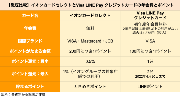 イオン「イオンカードセレクト」とLINE「Visa LINE Pay クレジットカード」はどちらがポイントを貯めやすいクレカか比較 2021.08.14 05:30 公開 執筆者藤原 悠喜 01/03 この写真の記事へ戻る 次の写真一覧へ copy URL 執筆者 藤原 悠喜 株式会社モニクルリサーチ 編集者/クレジットカード・住宅ローン・FX担当 専門学校を卒業後、複数のIT企業にて、Webメディアの立ち上げや運営に従事。SEOディレクターや広告運用など、Webマーケティング歴10年。現在は、クレジットカードのジャンルを中心にコンテンツの企画立案や執筆を行っている。これまで携わったクレジットカードのコンテンツは500以上。自身が使用するメインやサブのクレジットカードを定期的に入れ替え、サービス内容や使い勝手をユーザー視点で検証している。(2023年11月20日更新) あわせて読みたい