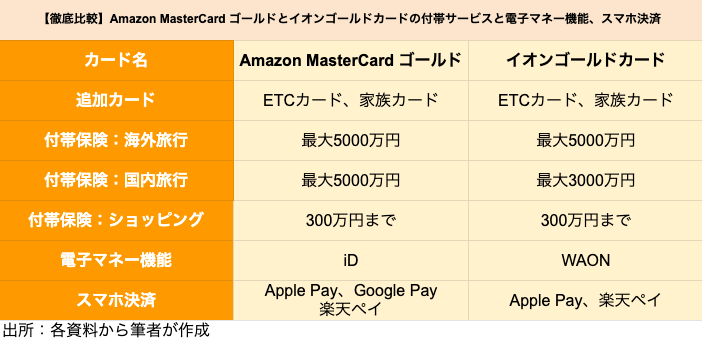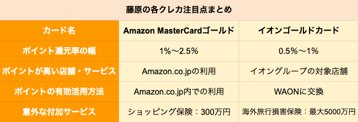 【ゴールドカード】アマゾン「Amazon MasterCardゴールド」とイオン「イオンゴールドカード」を徹底比較、どちらがポイントの貯まりやすいクレジットカードか 2021.08.21 05:30 公開 執筆者藤原 悠喜 02/03 03/03 この写真の記事へ戻る 藤原 悠喜 copy URL 執筆者 藤原 悠喜 株式会社モニクルリサーチ 編集者/クレジットカード・住宅ローン・FX担当 専門学校を卒業後、複数のIT企業にて、Webメディアの立ち上げや運営に従事。SEOディレクターや広告運用など、Webマーケティング歴10年。現在は、クレジットカードのジャンルを中心にコンテンツの企画立案や執筆を行っている。これまで携わったクレジットカードのコンテンツは500以上。自身が使用するメインやサブのクレジットカードを定期的に入れ替え、サービス内容や使い勝手をユーザー視点で検証している。(2023年11月20日更新) あわせて読みたい