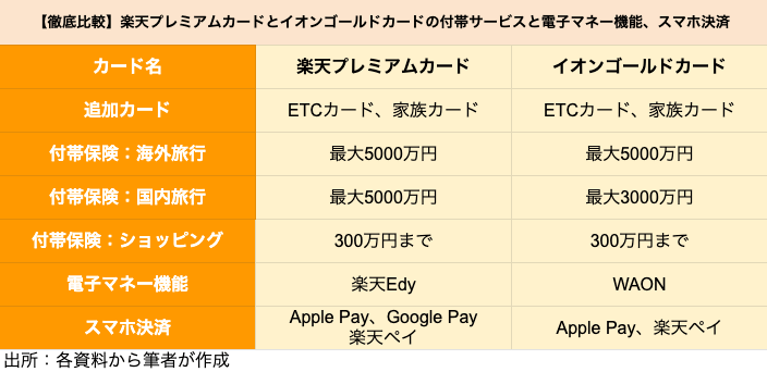 【ゴールドカード】楽天「楽天プレミアムカード」とイオン「イオンゴールドカード」を徹底比較、どちらがポイントの貯まりやすいクレジットカードか 2021.08.22 05:30 公開 執筆者藤原 悠喜 02/03 03/03 この写真の記事へ戻る 藤原 悠喜 copy URL 執筆者 藤原 悠喜 株式会社モニクルリサーチ 編集者/クレジットカード・住宅ローン・FX担当 専門学校を卒業後、複数のIT企業にて、Webメディアの立ち上げや運営に従事。SEOディレクターや広告運用など、Webマーケティング歴10年。現在は、クレジットカードのジャンルを中心にコンテンツの企画立案や執筆を行っている。これまで携わったクレジットカードのコンテンツは500以上。自身が使用するメインやサブのクレジットカードを定期的に入れ替え、サービス内容や使い勝手をユーザー視点で検証している。(2023年11月20日更新) あわせて読みたい