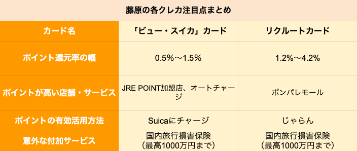 【クレカ比較】「ビュー・スイカ」カードとリクルートカードはどちらがポイントを貯めやすいクレカか 2021.08.30 05:30 公開 執筆者藤原 悠喜 02/03 03/03 この写真の記事へ戻る 藤原 悠喜 copy URL 執筆者 藤原 悠喜 株式会社モニクルリサーチ 編集者/クレジットカード・住宅ローン・FX担当 専門学校を卒業後、複数のIT企業にて、Webメディアの立ち上げや運営に従事。SEOディレクターや広告運用など、Webマーケティング歴10年。現在は、クレジットカードのジャンルを中心にコンテンツの企画立案や執筆を行っている。これまで携わったクレジットカードのコンテンツは500以上。自身が使用するメインやサブのクレジットカードを定期的に入れ替え、サービス内容や使い勝手をユーザー視点で検証している。(2023年11月20日更新)