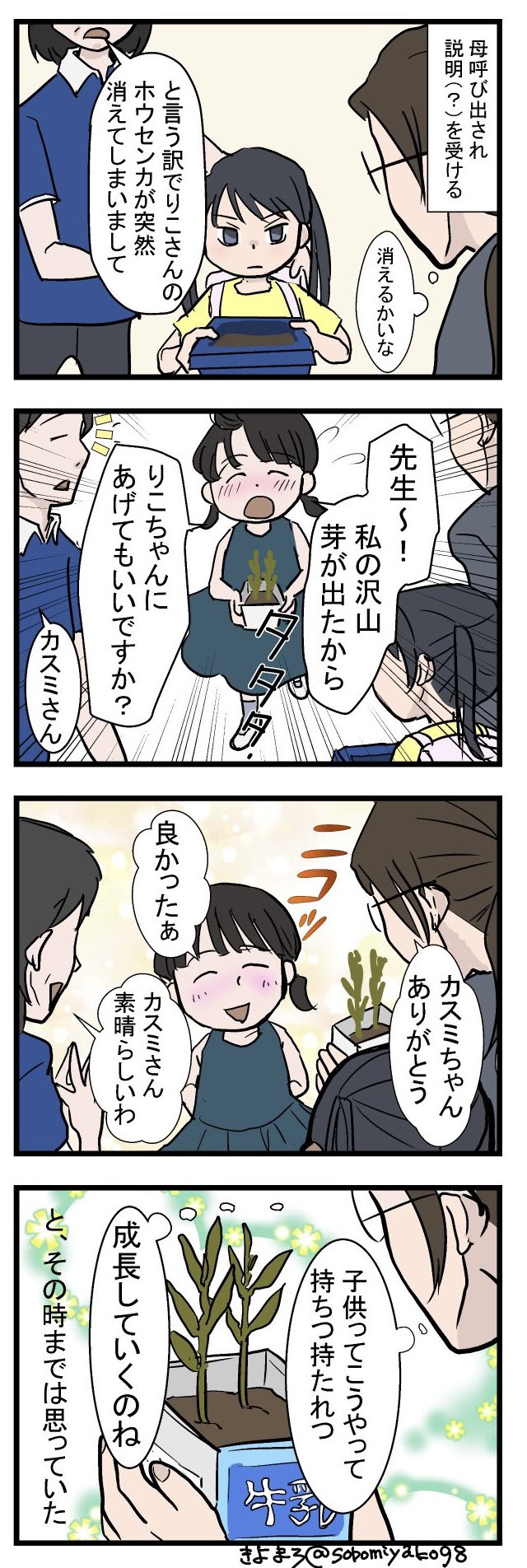 【ゾッ…】小学3年生の娘が学校で育てていたホウセンカ、突然消えて…?思わぬ犯人を描いた漫画に「怖い」と驚きの声 2021.09.10 11:30 公開 執筆者増田 雄三 02/04 03/04 04/04 この写真の記事へ戻る 増田 雄三 copy URL 執筆者 増田 雄三 記者/編集者 1980年生まれ、江戸川大学卒。モバイルコンテンツディレクターとして勤務した後、2008年に株式会社マイナビに入社。マイナビニュースにて記事広告の制作、広告営業、新規収益企画を経てライフスタイル情報を扱う編集者として従事。ツイッターやインスタグラムなどのSNSからネタを拾って記事を作ることが得意。新しいことに手を出したがる気質で、TikTokのフォロワーが2800人を超えた。 あわせて読みたい