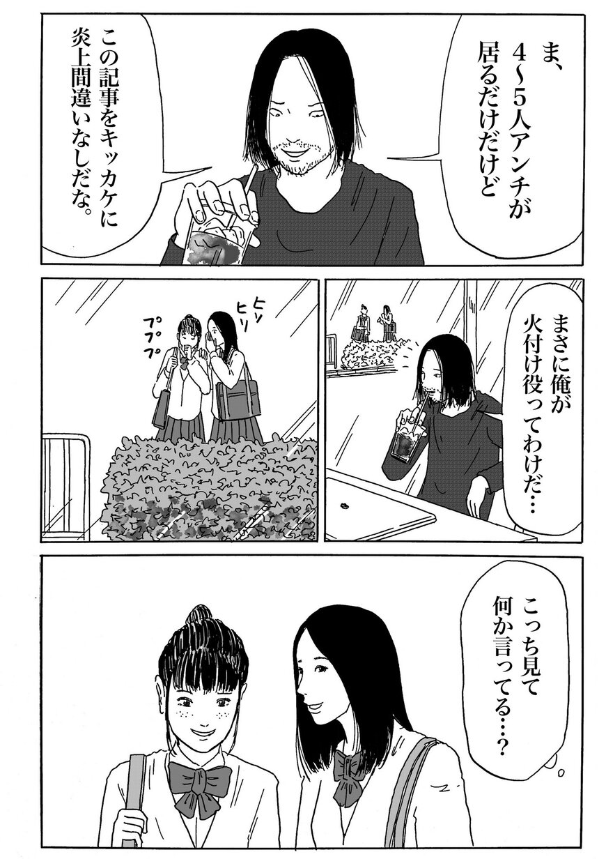 【怖い…】有名人を炎上させていたネットニュース記者、逆に自分が炎上してしまって - 奇妙な展開の漫画にツイッターで注目 2021.10.14 10:00 公開 執筆者増田 雄三 02/06 03/06 04/06 05/06 06/06 この写真の記事へ戻る 増田 雄三 copy URL 執筆者 増田 雄三 記者/編集者 1980年生まれ、江戸川大学卒。モバイルコンテンツディレクターとして勤務した後、2008年に株式会社マイナビに入社。マイナビニュースにて記事広告の制作、広告営業、新規収益企画を経てライフスタイル情報を扱う編集者として従事。ツイッターやインスタグラムなどのSNSからネタを拾って記事を作ることが得意。新しいことに手を出したがる気質で、TikTokのフォロワーが2800人を超えた。 あわせて読みたい