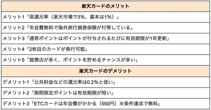 【楽天カード】5つのメリットと3つのデメリットを紹介、楽天カードは年会費無料で高還元率なクレジットカード 2022.06.09 18:30 公開 執筆者藤原 悠喜 01/01 この写真の記事へ戻る この写真の記事へ戻る 藤原 悠喜 copy URL 執筆者 藤原 悠喜 株式会社モニクルリサーチ 編集者/クレジットカード・住宅ローン・FX担当 専門学校を卒業後、複数のIT企業にて、Webメディアの立ち上げや運営に従事。SEOディレクターや広告運用など、Webマーケティング歴10年。現在は、クレジットカードのジャンルを中心にコンテンツの企画立案や執筆を行っている。これまで携わったクレジットカードのコンテンツは500以上。自身が使用するメインやサブのクレジットカードを定期的に入れ替え、サービス内容や使い勝手をユーザー視点で検証している。(2023年11月20日更新) あわせて読みたい