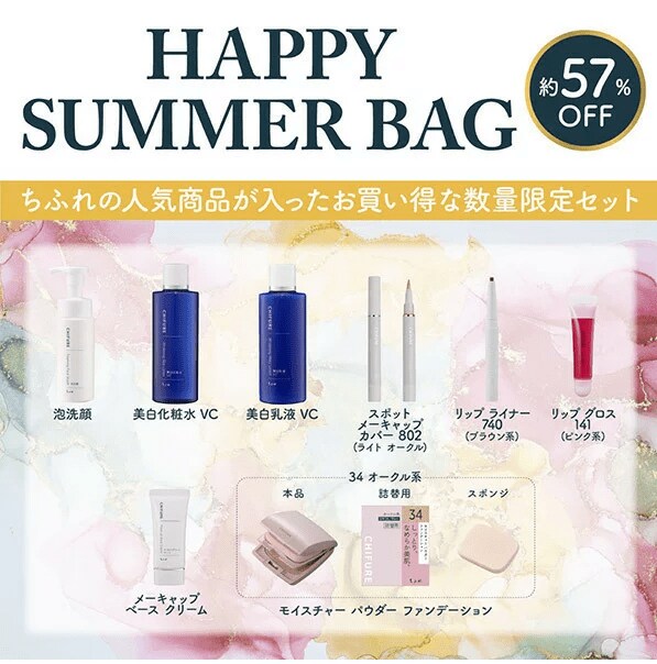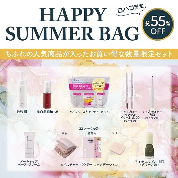 【ちふれ】10点入のお得すぎる福袋「ハッピーサマーバッグ」夏メイクが楽しくなる 2022.07.10 19:45 公開 執筆者中川 雅美 02/08 03/08 04/08 画像出典:すべて「@cosme SHOPPING 楽天市場店」 05/08 06/08 07/08 08/08 画像出典:すべて「LOHACO公式」 この写真の記事へ戻る 中川 雅美 copy URL 執筆者 中川 雅美 株式会社モニクルリサーチメディア編集本部 編集者 ファッション雑誌、ウェブメディアの編集者として15年キャリアを積む。現在、トレンドを先読みする視点を活かし、ファッションやライフスタイルのメディアで編集者として活躍する。 LIMOでは、「ワークマン」「しまむら」「カルディ」「ハニーズ」「ディーン&デルーカ」など、ヒット記事を多数生みだし、ブランドの広報からも信頼が厚い。 あわせて読みたい