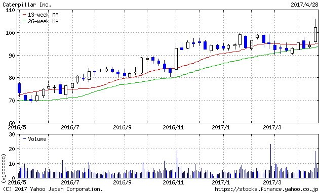 【NYダウ】キャタピラー急騰で重機株注目。通信競争激化の影響は? 【米株】上げた株・下げた株:2017年4月24日-28日 2017.05.01 12:30 公開 執筆者椎名 則夫 01/02 この写真の記事へ戻る 次の写真一覧へ copy URL 執筆者 椎名 則夫 証券アナリスト 早稲田大学政治経済学部を卒業後、東京銀行(現三菱東京UFJ銀行)入行。証券運用と法人融資に携わる。シカゴ大学MBA取得。フィデリティ投信に入社、中小型株全般、医薬品・ヘルスケア、保険、通信、インターネットの企業調査に従事。その後モルガンスタンレー証券にて株・クレジットのリスク管理業務を行う。日本証券アナリスト協会検定会員、CFA。 あわせて読みたい