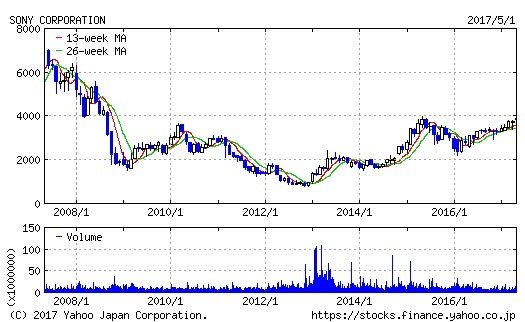 ソニーの決算が好感された3つの理由 前回の過去最高益計上後は4年連続減益に、今回はそれを回避できるのか 2017.05.03 08:00 公開 執筆者和泉 美治 ソニーの過去10年間の株価推移 01/01 この写真の記事へ戻る この写真の記事へ戻る 和泉 美治 copy URL 執筆者 和泉 美治 証券アナリスト 同志社大学文学部卒業後、エルコインターナショナル (現:京セラエルコ) に入社。英国バーミンガム大学にてMBA取得。その後UBSフィリップスアンドドリュー証券 (現:UBS証券) に入社し、調査部にてエレクトロニクスセクターを担当。2002年より2013年までJ.P.モルガンにて産業用エレクトロニクス及び民生エレクトロニクスセクターを担当。日本証券アナリスト協会検定会員。 あわせて読みたい