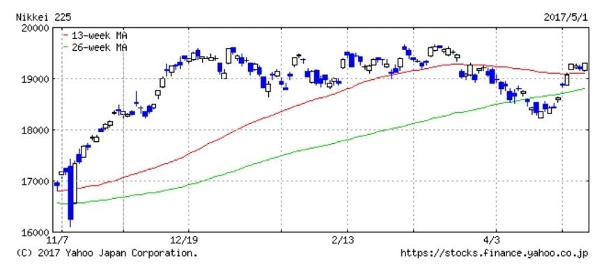 【日経平均株価】年初より続く外からの揺さぶり。連休明けは一段上を目指す動きか 【株式テクニカル分析】2017年5月6日 2017.05.06 08:03 更新 執筆者下原 一晃 日経平均株価の過去6か月間の推移 01/01 この写真の記事へ戻る この写真の記事へ戻る 下原 一晃 copy URL 執筆者 下原 一晃 テクニカルアナリスト マーケティング会社、リクルートなどを経て、PRプランナー・ライターとして独立。株式投資、投資信託をはじめとする資産形成や、年金、相続などに関する情報提供を行っている。あわせて、個人投資家がテクニカル理論を身に付けるためのヒントや知識の紹介にも取り組んでいる。日本テクニカルアナリスト協会認定テクニカルアナリスト(CMTA)。 あわせて読みたい