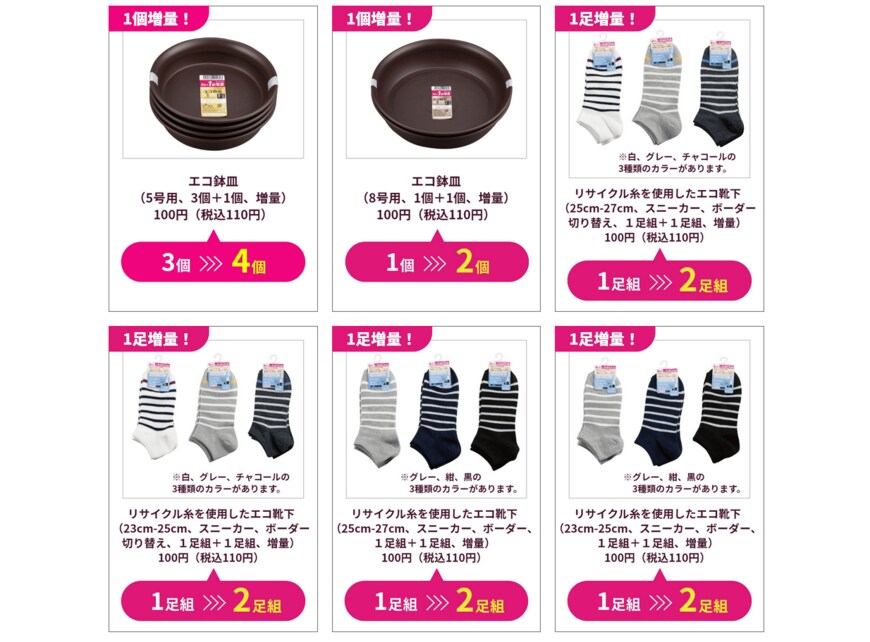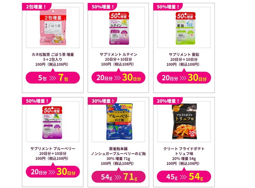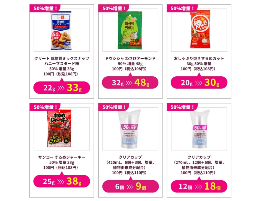 【100均ダイソー】『増量キャンペーン』9月始まり話題!日用品など50%増量も 2022.09.04 20:45 公開 執筆者中川 雅美 02/08 画像出典:ダイソー公式ツイッター 03/08 04/08 05/08 06/08 07/08 08/08 画像出典:すべて「ダイソー公式」 この写真の記事へ戻る 中川 雅美 copy URL 執筆者 中川 雅美 株式会社モニクルリサーチメディア編集本部 編集者 ファッション雑誌、ウェブメディアの編集者として15年キャリアを積む。現在、トレンドを先読みする視点を活かし、ファッションやライフスタイルのメディアで編集者として活躍する。 LIMOでは、「ワークマン」「しまむら」「カルディ」「ハニーズ」「ディーン&デルーカ」など、ヒット記事を多数生みだし、ブランドの広報からも信頼が厚い。 あわせて読みたい