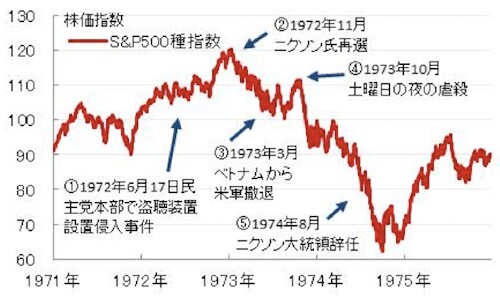 米政治情勢:こんな時だからウォーターゲート事件を振り返る 政治リスクが好調な米景気の腰を折らないか 2017.05.17 16:00 公開 執筆者梅澤 利文 ピクテ投信投資顧問 図表1:米国株式市場(S&P500種指数)の推移 (日次、期間:1971年1月4日〜1975年12月31日) 01/01 この写真の記事へ戻る この写真の記事へ戻る ピクテ投信投資顧問株式会社 梅澤 利文 copy URL 執筆者 梅澤 利文 ピクテ投信投資顧問株式会社 ファンドアナリスト 東京理科大学工学部卒業後、国内証券会社のシステム運用部門を経て、外資系運用会社(BNPパリバ投信投資顧問(当時)等)で債券、仕組債、オルタナティブ運用を担当。2010年ピクテ投信投資顧問入社。CFA協会認定証券アナリスト、日本証券アナリスト協会検定会員。 ピクテ投信投資顧問 あわせて読みたい