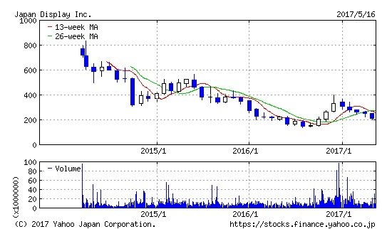 ジャパンディスプレイは前途多難? 4期連続の最終赤字は避けられるのか 決算後の株価は小動き、これは嵐の前の静けさ? 2017.05.18 07:05 更新 執筆者和泉 美治 ジャパンディスプレイの上場以来の株価推移 01/01 この写真の記事へ戻る この写真の記事へ戻る 和泉 美治 copy URL 執筆者 和泉 美治 証券アナリスト 同志社大学文学部卒業後、エルコインターナショナル (現:京セラエルコ) に入社。英国バーミンガム大学にてMBA取得。その後UBSフィリップスアンドドリュー証券 (現:UBS証券) に入社し、調査部にてエレクトロニクスセクターを担当。2002年より2013年までJ.P.モルガンにて産業用エレクトロニクス及び民生エレクトロニクスセクターを担当。日本証券アナリスト協会検定会員。 あわせて読みたい