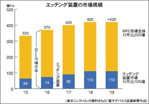 東京エレクトロン、売上高1兆円が射程圏内に 装置市場拡大で新たなフェーズに、カギ握るエッチング装置のシェア向上 2017.06.12 06:00 公開 執筆者電子デバイス産業新聞 02/03 河合社長は「半導体は新しい成長フェーズに入った」とWFE市場拡大の背景を説明する 03/03 この写真の記事へ戻る 電子デバイス産業新聞 copy URL 執筆者 電子デバイス産業新聞 産業タイムズ社 国内唯一の電子デバイス業界専門紙。半導体、一般電子部品、フラットパネルディスプレー、プリント配線板、太陽電池、2次電池、各種製造装置や電子材料などもカバー。電子デバイスという視点から自動車や医療、ロボット、FA、航空・宇宙といった産業分野の動向も詳細に報道・分析しています。 あわせて読みたい