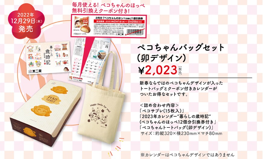 卯が可愛い【不二家】福袋「ペコちゃんバッグセット」お菓子たっぷりでお得 2022.12.28 20:45 公開 執筆者中川 雅美 02/05 03/05 04/05 05/05 画像出典:すべて「不二家公式」 この写真の記事へ戻る 中川 雅美 copy URL 執筆者 中川 雅美 株式会社モニクルリサーチメディア編集本部 編集者 ファッション雑誌、ウェブメディアの編集者として15年キャリアを積む。現在、トレンドを先読みする視点を活かし、ファッションやライフスタイルのメディアで編集者として活躍する。 LIMOでは、「ワークマン」「しまむら」「カルディ」「ハニーズ」「ディーン&デルーカ」など、ヒット記事を多数生みだし、ブランドの広報からも信頼が厚い。 あわせて読みたい