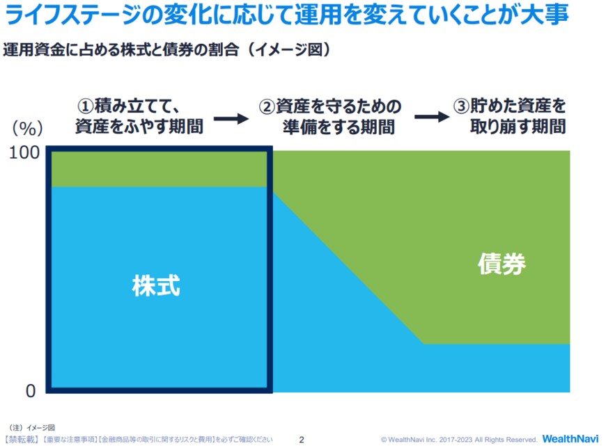 【年代別】資産形成で気を付けることとは?3つのライフステージで考える 積み立て投資のポイント 2023.02.21 19:00 公開 執筆者小松原 和仁 02/05 03/05 04/05 05/05 この写真の記事へ戻る ウェルスナビ株式会社 小松原 和仁 copy URL 執筆者 小松原 和仁 ウェルスナビ株式会社 ウェルスナビ株式会社セミナー講師/1級ファイナンシャル・プランニング技能士 同志社大学卒業後、証券会社に入社し個人向けの資産運用アドバイス業務を行う。保険会社に移り保険代理店向けの経営企画や教育・研修に携わった後、信託銀行で証券投資・相続対策・不動産管理等の資産のコンサルティング業務に従事。2018年11月、働く世代が豊かさを実感できる社会をつくりたいという理念に共感し、ウェルスナビにセミナー講師として入社。これまでに、500回以上の資産運用セミナーに登壇し、参加者からの多くの質問にも答えている。1級ファイナンシャル・プランニング技能士、宅地建物取引士。 あわせて読みたい