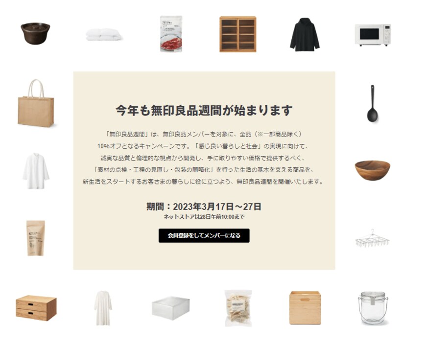 【無印良品】1年ぶりのセール!全品10%オフのお得な限定11日間 2023.03.17 08:45 公開 執筆者中川 雅美 02/04 03/04 04/04 画像出所:すべて「無印良品公式」 この写真の記事へ戻る 中川 雅美 copy URL 執筆者 中川 雅美 株式会社モニクルリサーチメディア編集本部 編集者 ファッション雑誌、ウェブメディアの編集者として15年キャリアを積む。現在、トレンドを先読みする視点を活かし、ファッションやライフスタイルのメディアで編集者として活躍する。 LIMOでは、「ワークマン」「しまむら」「カルディ」「ハニーズ」「ディーン&デルーカ」など、ヒット記事を多数生みだし、ブランドの広報からも信頼が厚い。 あわせて読みたい