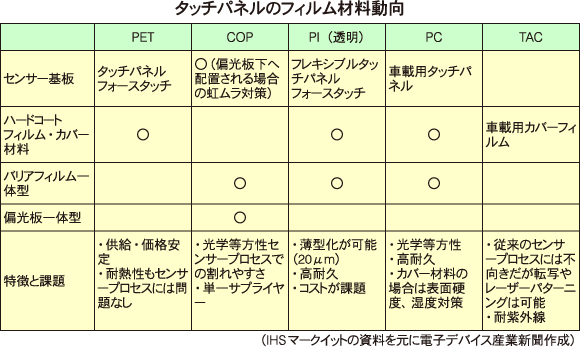有機ELディスプレー普及による内部部材の変化 フィルムの機能統合と高付加価値化が進む 2017.09.04 10:30 公開 執筆者電子デバイス産業新聞 電子デバイス産業新聞 01/01 この写真の記事へ戻る この写真の記事へ戻る 電子デバイス産業新聞 copy URL 執筆者 電子デバイス産業新聞 産業タイムズ社 国内唯一の電子デバイス業界専門紙。半導体、一般電子部品、フラットパネルディスプレー、プリント配線板、太陽電池、2次電池、各種製造装置や電子材料などもカバー。電子デバイスという視点から自動車や医療、ロボット、FA、航空・宇宙といった産業分野の動向も詳細に報道・分析しています。 電子デバイス産業新聞 あわせて読みたい