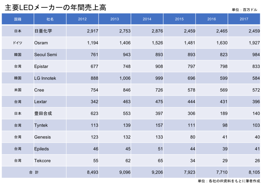 LED売上ランキング、首位の日亜に迫る独オスラム クロスライセンスは次の成長フェーズの始まりか 2018.04.11 06:00 公開 執筆者津村 明宏 01/01 この写真の記事へ戻る この写真の記事へ戻る 電子デバイス産業新聞 編集長 津村 明宏 copy URL 執筆者 津村 明宏 株式会社産業タイムズ社 電子デバイス産業新聞 編集長 1995年3月に関西大学経済学部卒。1999年3月 ㈱産業タイムズ社に入社。電子デバイス業界の専門紙である電子デバイス産業新聞(旧・半導体産業新聞)の記者として、2007年より副編集長、2009年12月より編集長。 あわせて読みたい