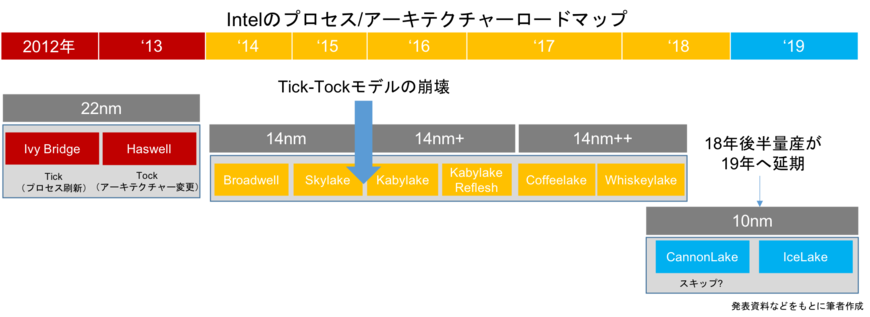 Intelを阻む微細化の壁、10nm量産を再延期 TSMCよりあえて難しいチャレンジ、結論は19年に持ち越し 2018.05.15 06:00 公開 執筆者稲葉 雅巳 01/02 この写真の記事へ戻る 次の写真一覧へ copy URL 執筆者 稲葉 雅巳 株式会社産業タイムズ社 電子デバイス産業新聞 副編集長 2005年(株)産業タイムズ社入社、以後、電子デバイス産業新聞(旧:半導体産業新聞)編集部記者として、半導体を中心にエレクトロニクス業界の取材活動を続ける。2015年から副編集長。 あわせて読みたい