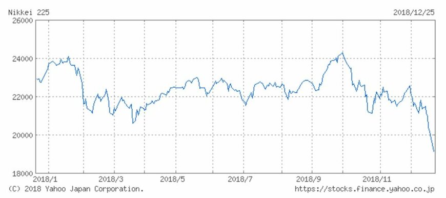 暴落の日本株、今年の下落率はどのくらいか? 2018.12.26 06:00 公開 執筆者葛西 裕一 日経平均株価の過去1年間の推移 01/01 この写真の記事へ戻る この写真の記事へ戻る 葛西 裕一 copy URL 執筆者 葛西 裕一 証券アナリスト 国立大学卒業後、国内・外資系の金融機関にて23年勤務後に独立。証券アナリストなどの職務を経験し、ファイナンシャルプランナー関連等の金融系資格を多数保有。専門は株式投資、貴金属投資、年金、相続、不動産。 あわせて読みたい