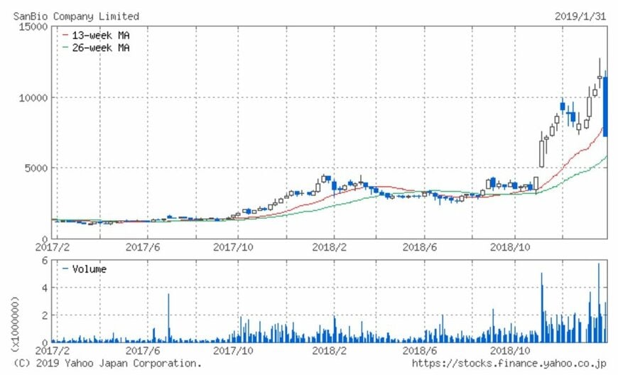 サンバイオ株の大暴落! 個人投資家の悲劇はこれからが本番? 改めて見直されるべき新興市場の投資リスク 2019.02.01 06:00 公開 執筆者葛西 裕一 サンバイオの過去2年間の株価推移 01/01 この写真の記事へ戻る この写真の記事へ戻る 葛西 裕一 copy URL 執筆者 葛西 裕一 証券アナリスト 国立大学卒業後、国内・外資系の金融機関にて23年勤務後に独立。証券アナリストなどの職務を経験し、ファイナンシャルプランナー関連等の金融系資格を多数保有。専門は株式投資、貴金属投資、年金、相続、不動産。 あわせて読みたい