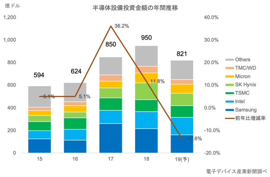 下期回復は楽観的過ぎる? 19年半導体設備投資は14%減予想 メモリー投資後退、前工程装置はそれ以上の落ち込み 2019.02.27 06:00 公開 執筆者稲葉 雅巳 01/01 この写真の記事へ戻る この写真の記事へ戻る 電子デバイス産業新聞 副編集長 稲葉 雅巳 copy URL 執筆者 稲葉 雅巳 株式会社産業タイムズ社 電子デバイス産業新聞 副編集長 2005年(株)産業タイムズ社入社、以後、電子デバイス産業新聞(旧:半導体産業新聞)編集部記者として、半導体を中心にエレクトロニクス業界の取材活動を続ける。2015年から副編集長。 あわせて読みたい